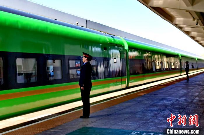 图为暑运期间从日喀则站开往拉萨站的复兴号动车驶离车站。斗山得 摄