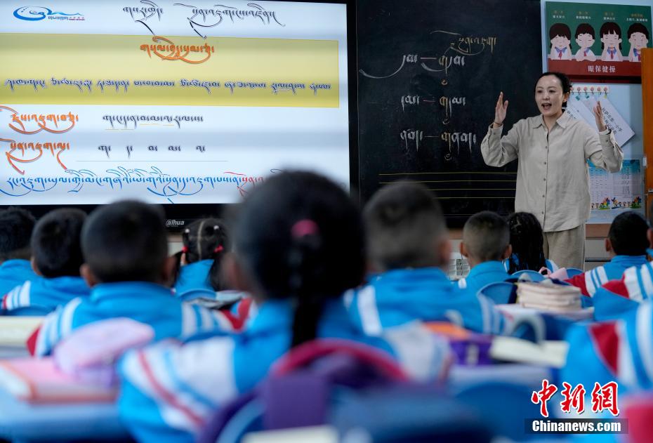 3月10日,拉萨市第一小学藏语文老师桑旦旺姆在课堂上讲课。当日,西藏拉萨市春季学期开学,各项教学工作有序开展。
