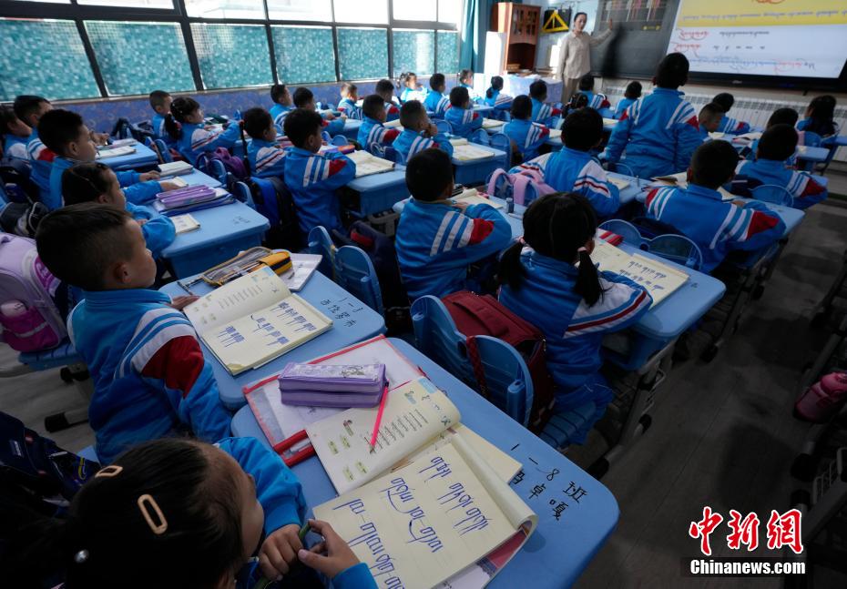 3月10日,拉萨市第一小学一年级八班学生们正在上藏语文课。当日,西藏拉萨市春季学期开学,各项教学工作有序开展。