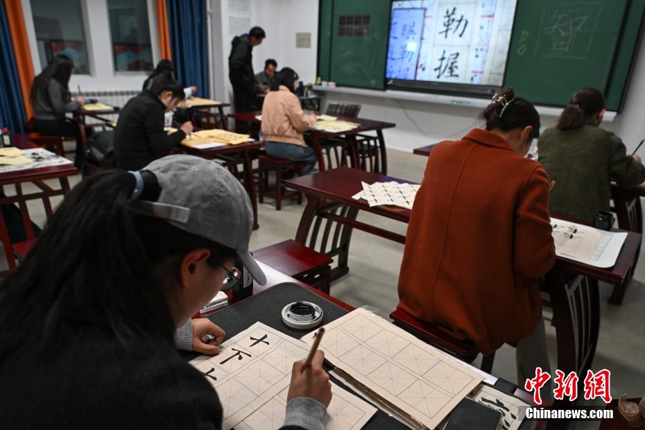 5月8日,在西藏自治区拉萨市青少年活动中心,夜校学员在上软笔书法课。据悉,2025年拉萨市首期夜校共招收385名青年,设立了美术、软笔书法、扎木念、美妆、咖啡制作、职场解压等14门课程,满足年轻人的多样化需求。