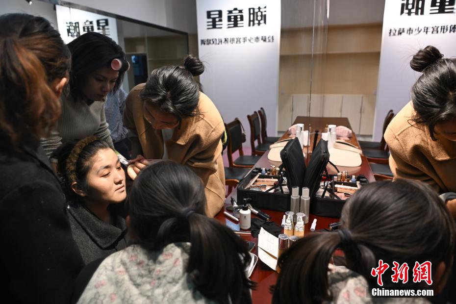 5月8日,在西藏自治区拉萨市青少年活动中心,夜校学员在上美妆课。据悉,2025年拉萨市首期夜校共招收385名青年,设立了美术、软笔书法、扎木念、美妆、咖啡制作、职场解压等14门课程,满足年轻人的多样化需求。