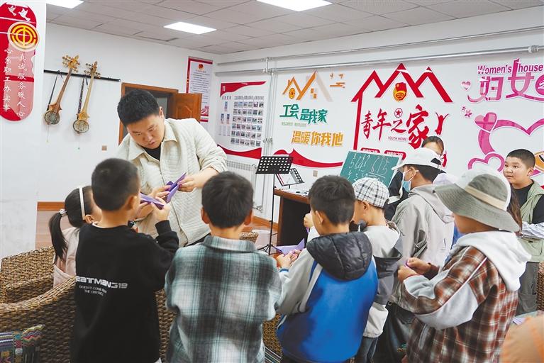 图为该县暑期托管班工作人员给孩子们上手工课。记者 丹增平措 摄