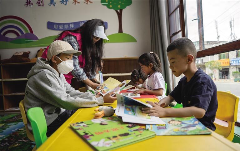 除了基础托管服务,巴斯社区还精心打造了周末及暑期的“不打烊”成长乐园。通过整合社工、退休教师、返乡大学生等资源,推出了一系列特色服务:为6—7岁儿童开设“萌芽启航”启蒙课程,采用游戏化教学方式,帮助孩子掌握拼音和简单加减法;暑期则推出“高原小卫士”实践课程,组织孩子们参与志愿服务,开展安全教育。站内配备了丰富的儿童读物和益智玩具,并开通了“家长连线”功能,家长可通过微信视频实时查看孩子的动态。这些特色服务是多杰在结合社区实际情况、广泛听取居民意见后精心设计的。