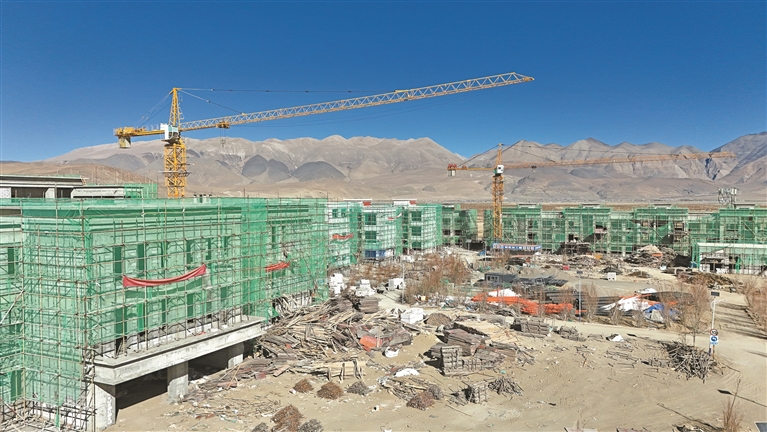 图为定日县长所乡完全小学重建现场。记者 马晓艳 杨子彦 旦增嘎瓦 摄