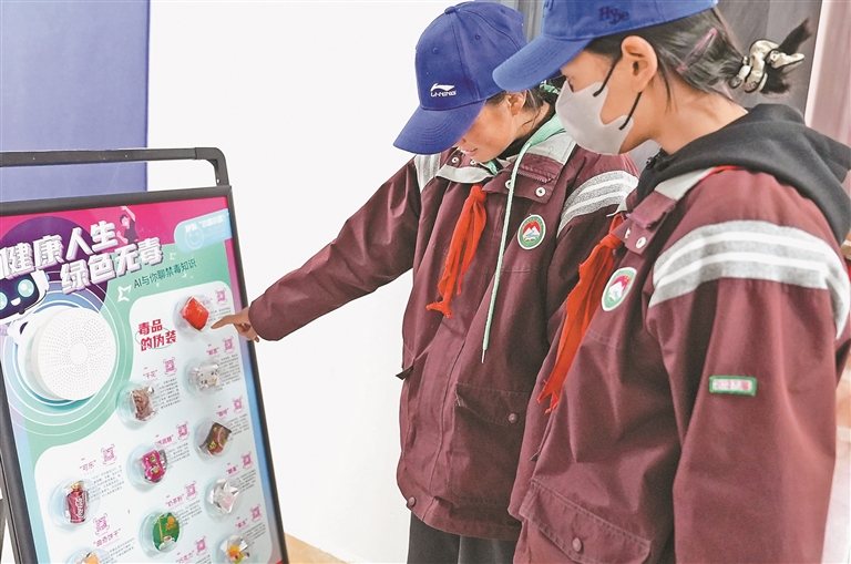 为提高学生们防范意识,民警在讲解新型毒品相关知识。