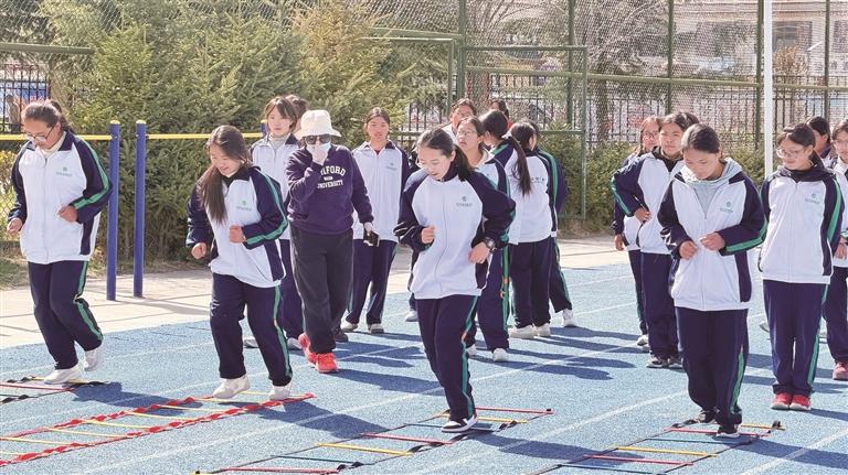 “学校重视体育健康课程,尊重学生个体差异,针对不同学生特点,打破传统体育教学模式,根据学生兴趣特长,在高中阶段开设了涵盖球类、田径、武术等多元体育项目,在体育课上实现了自主选课,分项走班教学,让每位学生能择己所爱,练己所长,因材施教,极大提升了运动热情。”拉萨北京实验中学副校长曹小梅说,为丰富体育教学内容,培养学生运动习惯和团队精神,学校开设了丰富的校本课程与社团课程,其中涵盖趣味篮球、匹克球、网球、燃脂操、体育舞蹈等十余种特色课程,课外体育活动有序开展、精彩纷呈,同时为各项赛事做好了充足准备。从课堂教学到课外拓展,从校本研修到专项训练,学校全方位、全覆盖落实体育锻炼要求,让体育育人更有深度、更具特色。