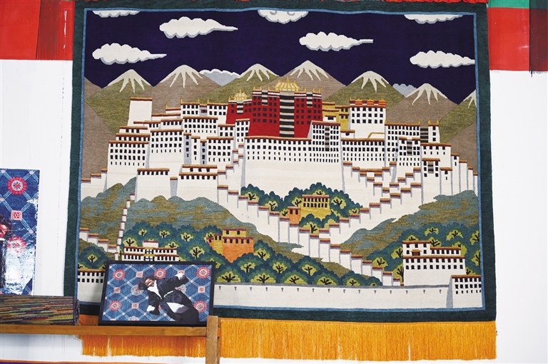 在藏毯厂陈列厅里,悬挂着一幅以布达拉宫为题材的藏毯。“眼前的这幅藏毯已经悬挂十年,没有任何变形。”喀瓦坚藏毯厂工作人员彭志红说,可见手工藏毯的质量绝佳。