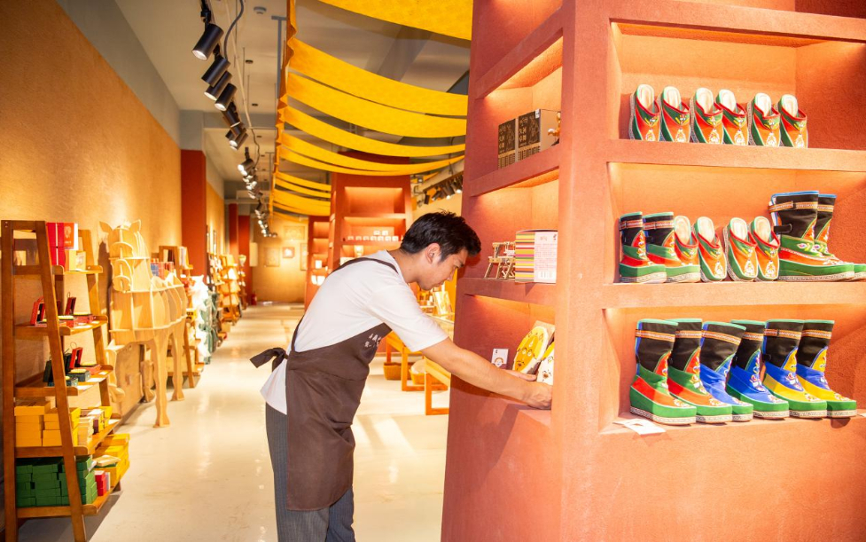 以西藏特产仓储超市·乃仓总店的联合体:西藏文创集合超市为例,店内销售的牦牛角工艺品,经过精湛的工艺加工,成为具有浓郁民族特色的旅游纪念品。此外,乃仓店还与当地农牧民合作社合作,收购农牧民手中的牦牛绒、牦牛骨等原材料,助力农牧民增收。