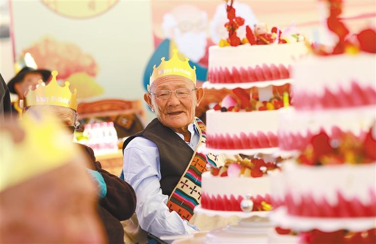 图为拉萨市墨竹工卡县民政局和退役军人事务局举行“我们的节日·重阳”主题活动,现场为老人们集体过生日。 记者 唐斌 本报通讯员 洛克 摄