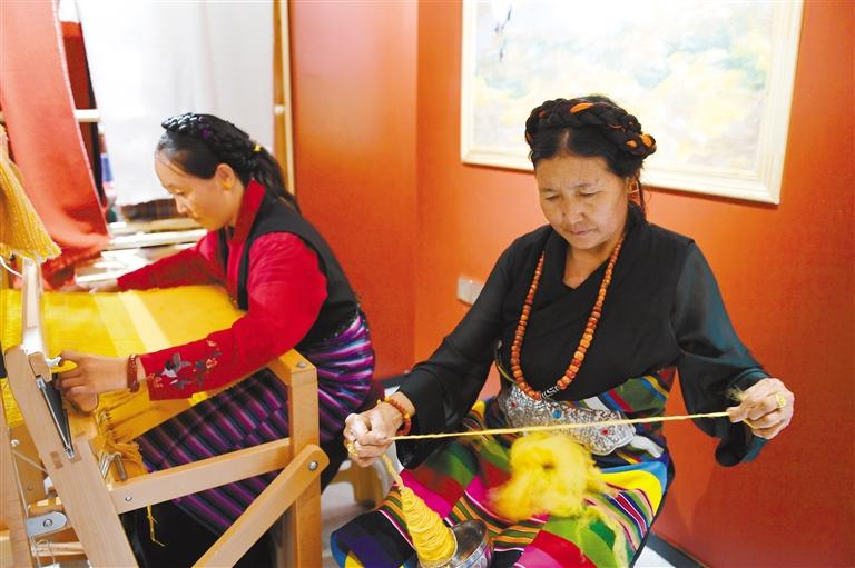 近年来,在上海市第十批援藏江孜小组的支持下,江孜县打造氆氇制作的“前店后坊”模式,将现代技术融入传统工艺中,在江热乡班觉伦布村设立“阿佳格桑工坊”。通过改进传统工艺、提升文化创意附加值,推动氆氇实现选材从羊毛到羊绒的改变、外观从工艺向设计蜕变、从业者从工人到工匠的转变。