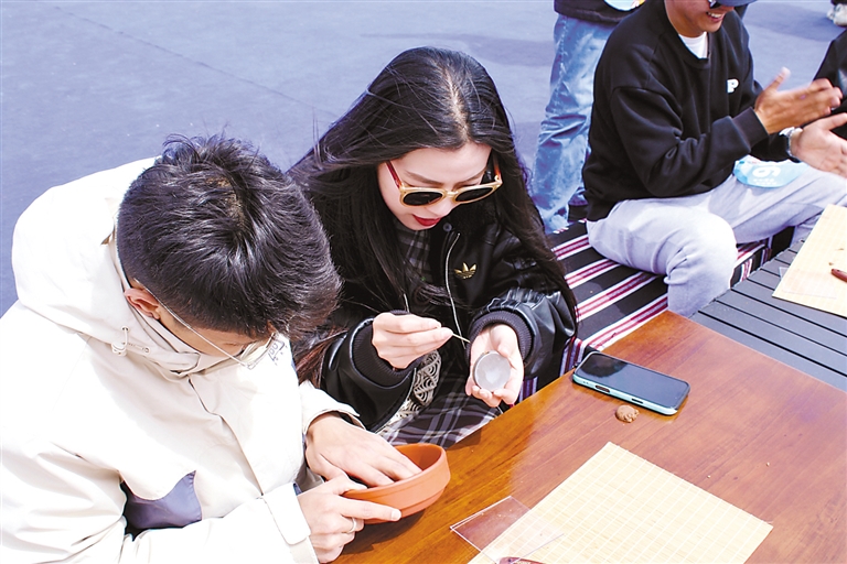 青年体验制作藏香。