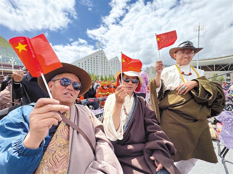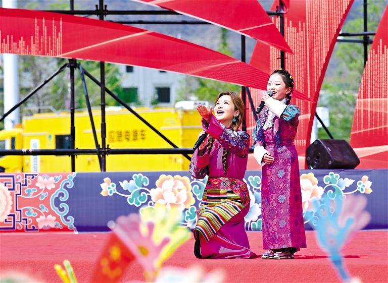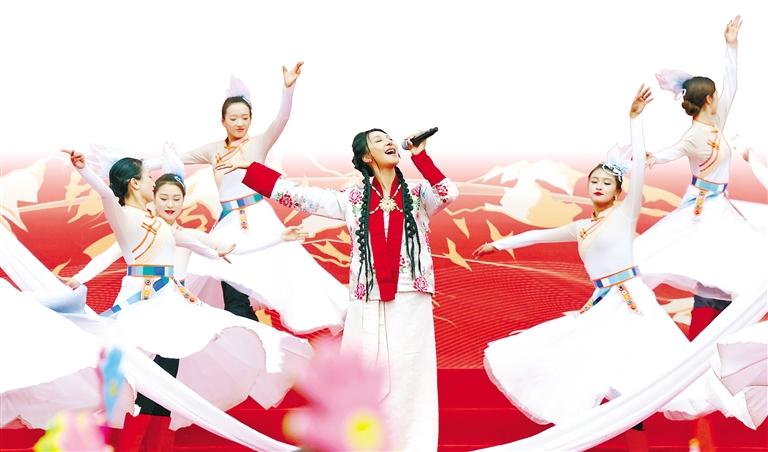 演出中,不同民族的文艺志愿者齐聚一堂。汉族、藏族、蒙古族、彝族等各民族艺术家携手合作,用艺术搭建起沟通的桥梁。他们用歌声、舞蹈、相声、朗诵等多种艺术形式,深情歌颂新时代党的治藏方略,生动展现西藏自治区成立60年来的沧桑巨变,传递民族团结的深厚情谊,让现场观众沉浸在艺术的氛围中。