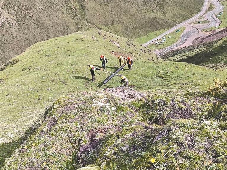 图为西藏电信公司施工人员开展通信基础设施建设,材料搬运现场。记者 董国峰 彭琦 摄
