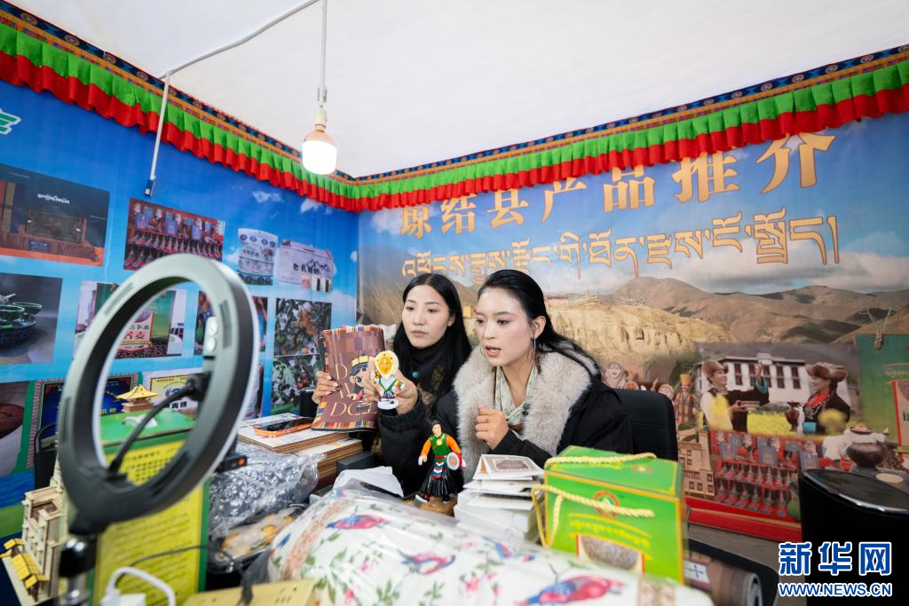 12月1日,来自西藏琼结县的助农主播在直播间介绍产品。新华网 旦增努布 摄