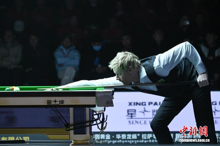 1月1日,澳大利亚选手尼尔·罗伯逊在比赛中。当日,在西藏拉萨冬季高原斯诺克挑战赛的比赛中,中国选手肖国栋以5比3战胜澳大利亚选手尼尔·罗伯逊。中新社记者 贡嘎来松 摄