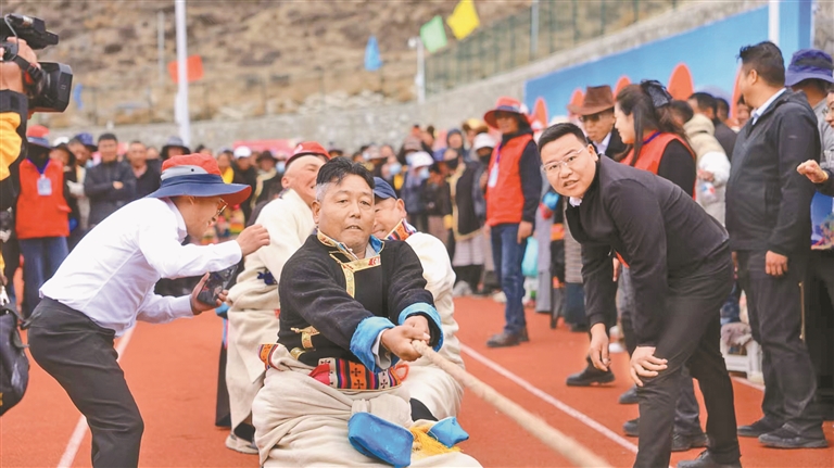 日前,以“金彩桑日·和美乡村”为主题的山南市桑日县首届农牧民运动会火热开赛。204名农牧民选手化身运动场上的骁勇健儿,在抱石头、打牛角、押加、响箭等一系列传统体育和竞技项目中切磋技艺、团结奋进。大家在比赛中,既强健体魄,又凝聚乡情。