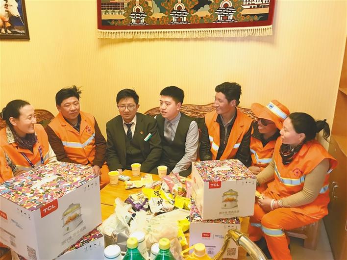 农行康昂东路支行员工关心关爱环卫工人。