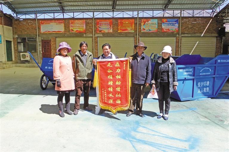 仁钦蔡村村委会向马哈哈送锦旗。