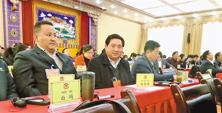 作为一名拉萨市政协委员,马哈哈(左二)密切联系群众,了解和反映群众的愿望和要求,参加拉萨市政协组织的会议和活动。