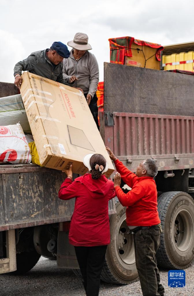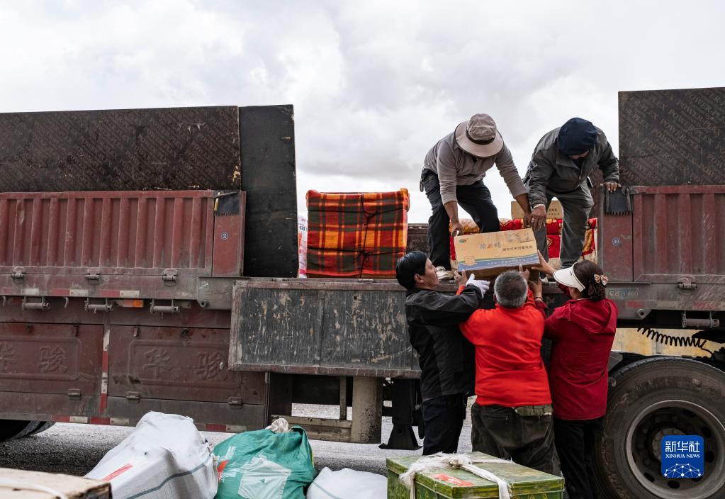 双湖县多玛乡果根擦曲村村民将行李搬上货车(7月12日摄)。新华社记者 孙非 摄