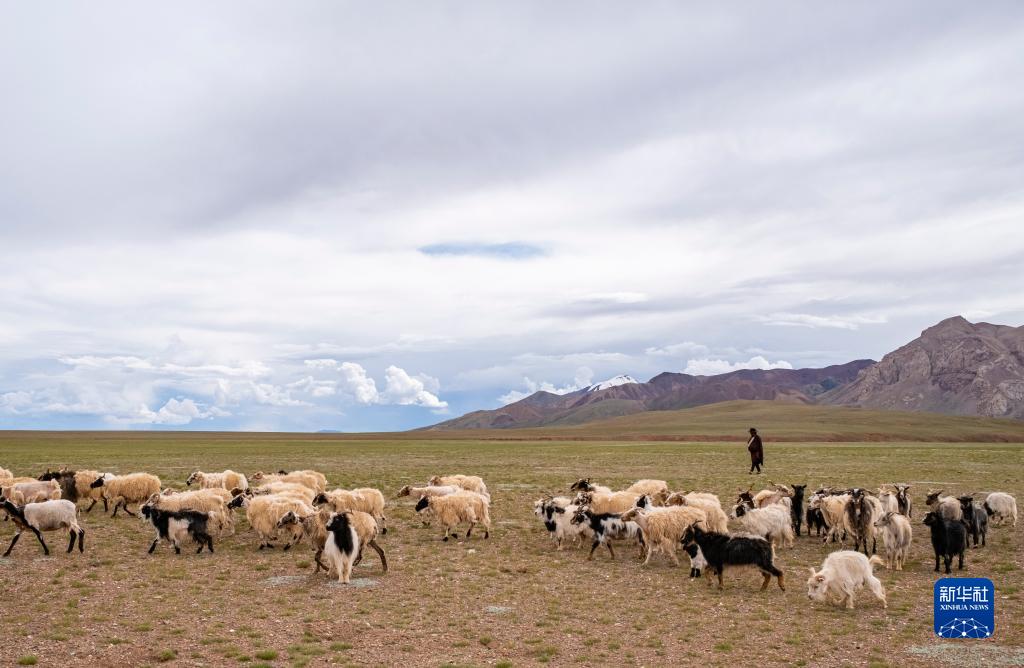 双湖县多玛乡仲鲁玛村牧民在放牧(7月13日摄)。新华社记者 孙非 摄