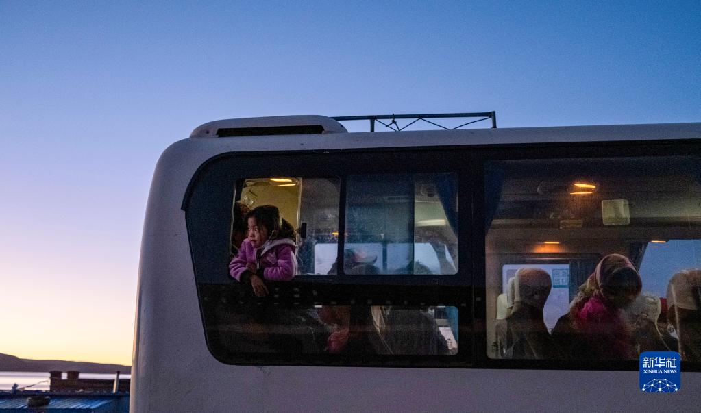 7月19日,西藏自治区开始实施全国海拔最高县双湖县第二批高海拔牧民生态搬迁。客车载着牧民驶离西藏那曲市双湖县多玛乡,前往位于山南市贡嘎县的森布日安置点。