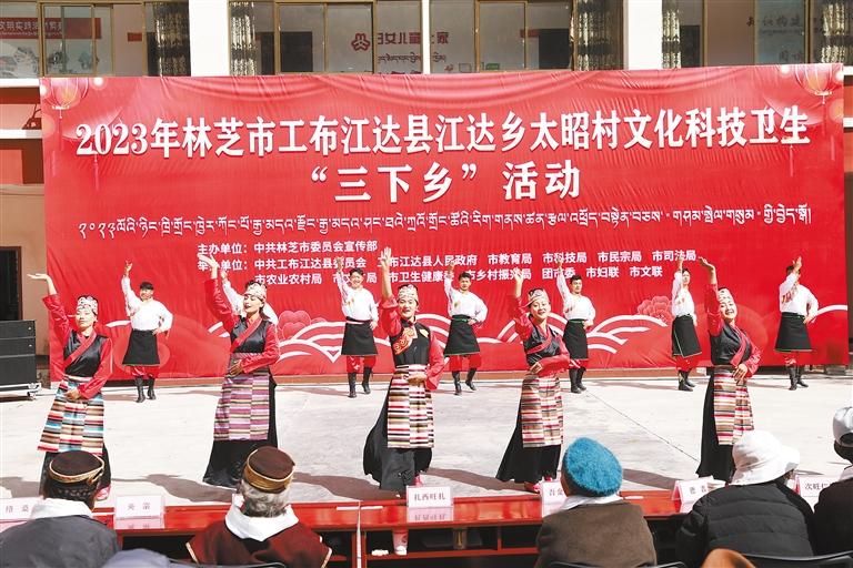 近日,由林芝市委宣传部牵头在工布江达县江达乡太昭村联合举办林芝市文化科技卫生“三下乡”活动。林芝市、工布江达县两级文艺工作者为现场群众送上的《续写盛世》《栢榭》等精彩节目和哈呼曲艺社带来的语言类节目《学习国家通用语言文字》,深受群众喜爱,节目中还穿插党的二十大精神等相关知识问答环节,在场群众积极参与,踊跃回答,现场气氛十分活跃。