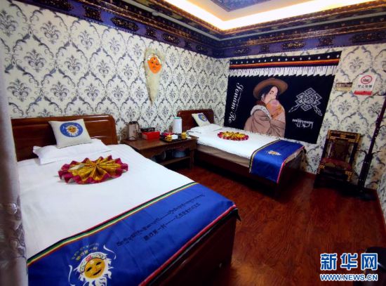 图为扎西曲登社区31号民宿内具有藏戏特色装修风格的房间(1月31日摄)。新华网发 李腾 摄