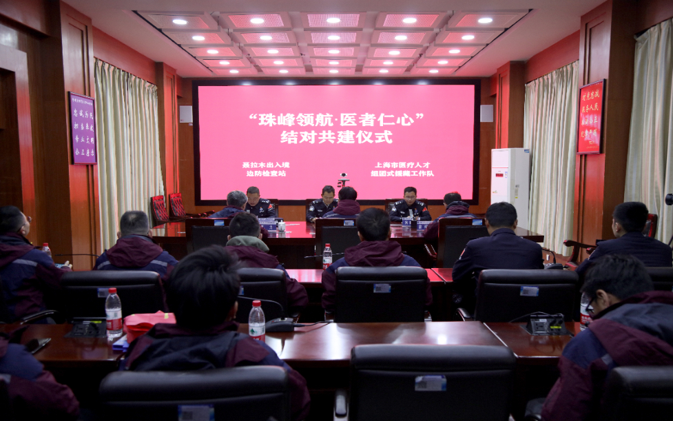 日喀则市人民医院党委书记、上海市医疗人才“组团式”援藏医疗队总领队王庆华与聂拉木边检站党委书记、站长周永军代表双方,签订“珠峰领航·医者仁心”共建协议书,并向聂拉木出入境边防检查站捐赠价值3000元药品。同时,双方单位在组织党建、医疗就医、人员培训、国防教育等方面,开展合作交流、协作共建,并举行共建仪式。