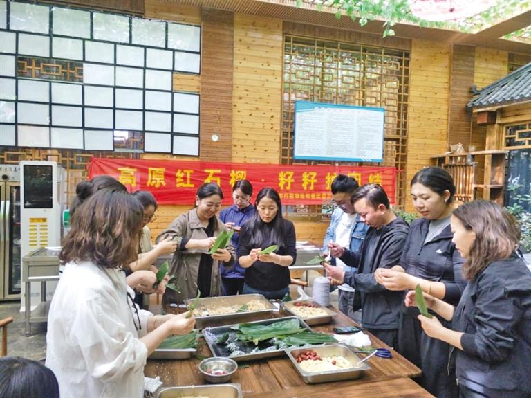 图为日喀则市行政审批和便民服务局组织开展共聚“民族餐”活动,各族干部在一起包粽子。