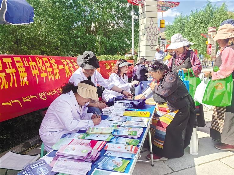 图为仁布县卫健委开展以“中华民族一家亲·爱心义诊送万家”为主题的免费义诊活动。