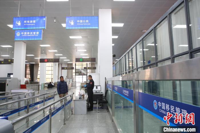 12月1日,吉隆口岸联检大厅正式启用新版对外开放口岸出入境边防检查现场标志。肖富贵 摄