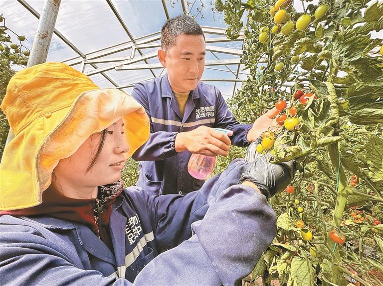 图为昌都市贡觉县现代农业产业园区内,技术员在大棚内教授当地群众小番茄种植技术。记者 白玛泽旺 次仁平措 摄