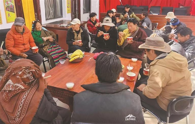 图为巴青县干部与群众在村级活动场所同下厨、共进餐。(图片由巴青县委宣传部提供)