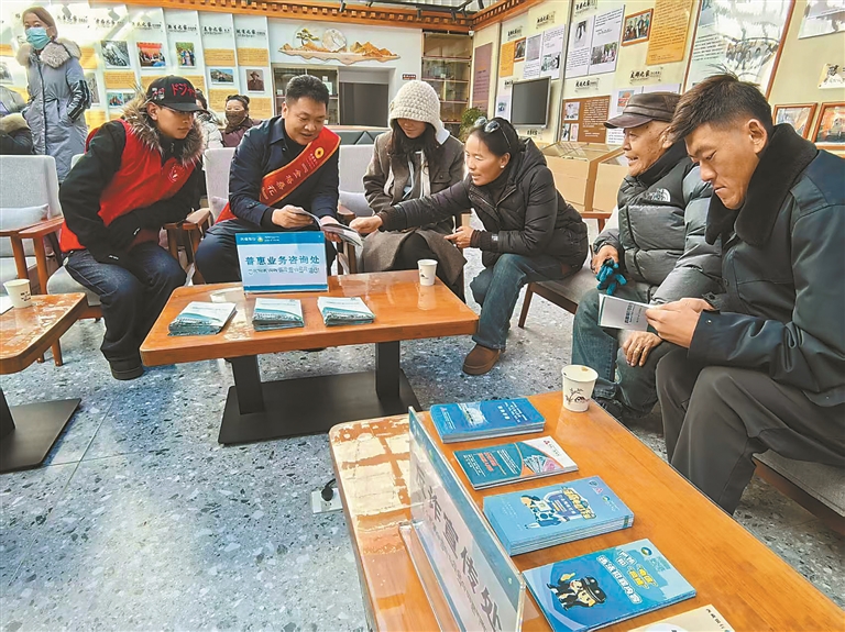 图为西藏银行工作人员在为辖区居民提供金融业务咨询。记者 刘琳琳 摄