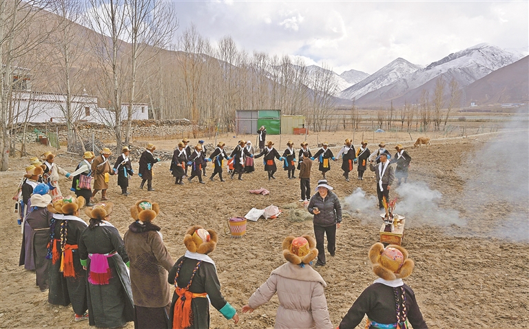 3月16日,拉萨市达孜区塔杰乡塔杰村的田野里,一年一度的春耕仪式热闹启幕。