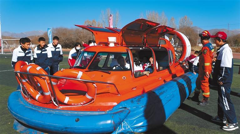 图②:学生体验消防救援艇。