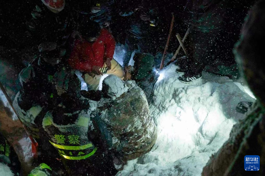 雪崩夜,民警徒手刨雪救援。(受访者供图)