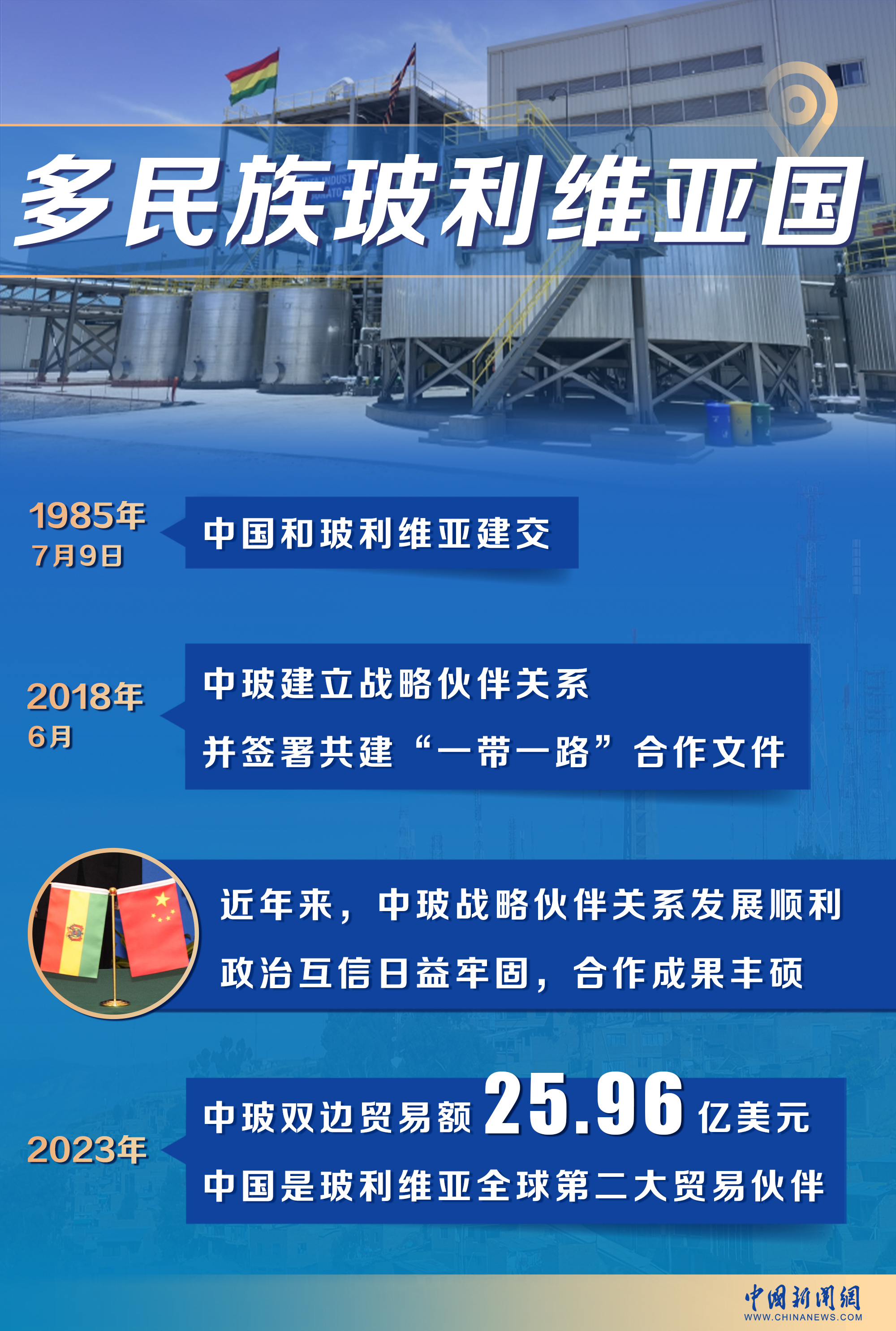 2023年,中玻双边贸易额达到25.96亿美元,中国成为玻利维亚全球第二大贸易伙伴。