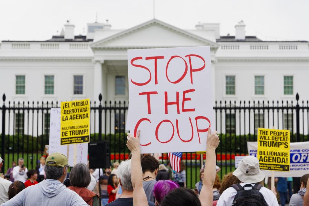 4月19日,人们在美国首都华盛顿白宫门前参加抗议活动。美国多地19日举行抗议活动,首都华盛顿、纽约、旧金山、波士顿等城市的民众走上街头,抗议现政府大规模裁员、加征关税、驱逐移民等政策。新华社发(亚伦摄)