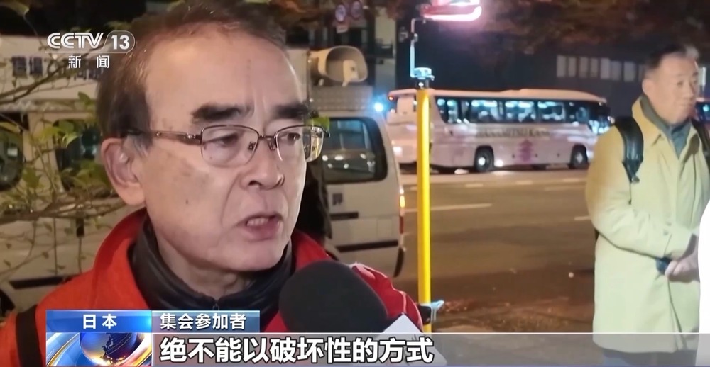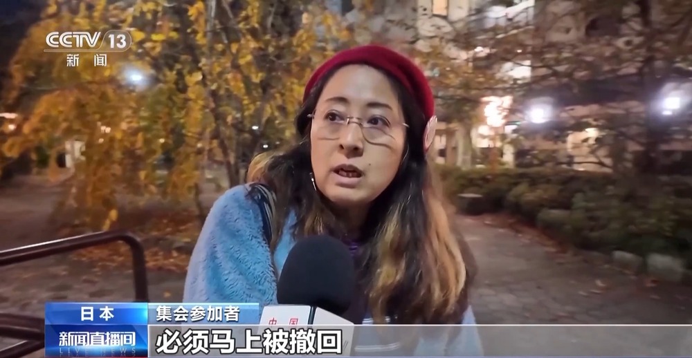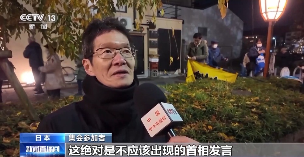 集会参加者:我当然认为高市应该撤回错误言论,对于国民来说,这绝对是不应该出现的首相发言,我认为这是违反宪法的。