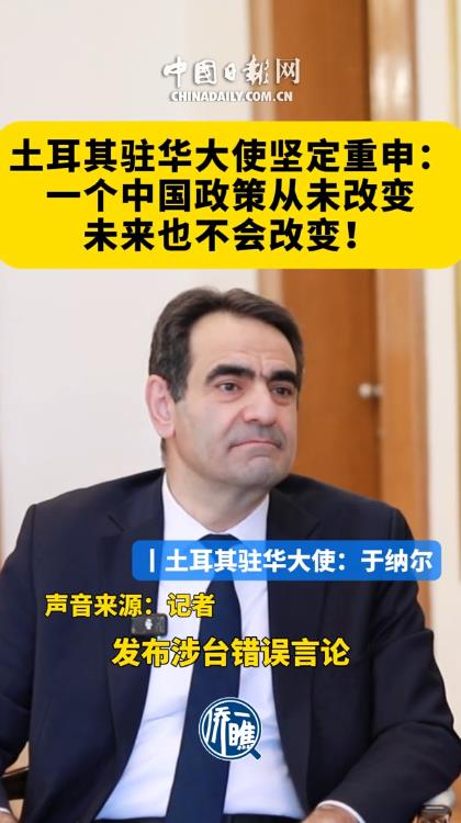 近日土耳其驻华大使于纳尔在接受中国日报专访时,就日本首相高市早苗发表涉台错误言论表示,土耳其自1971年与中国建交以来,始终坚定不移地奉行一个中国政策,“这一立场从未改变,也绝不会改变”。