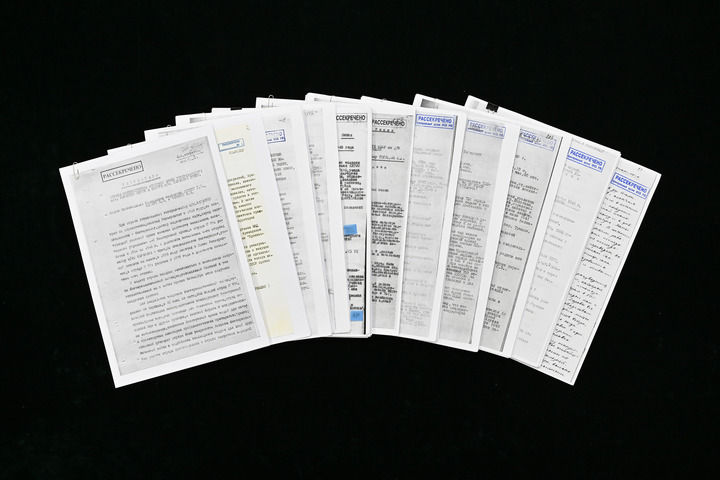 2025年12月13日,第十二个南京大屠杀死难者国家公祭日,中央档案馆公布一批俄罗斯转交我方的苏联审讯日本731部队的解密档案材料。一些侦讯记录系首次公开,受审战犯对其违反国际公约、准备和实施细菌战的罪行供认不讳。这是解密的档案。新华社记者 李鑫 摄
