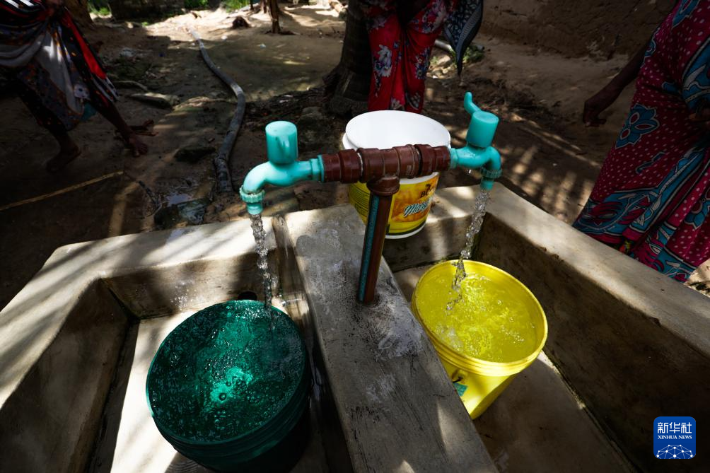 这是1月1日在坦桑尼亚桑给巴尔的奔巴岛拍摄的一处由中国援助坦桑尼亚“桑给巴尔血吸虫病防治技术项目”专家组援助建设的供水设施。它能够为当地社区提供安全用水。新华社发(赫尔曼·埃马纽埃尔摄)