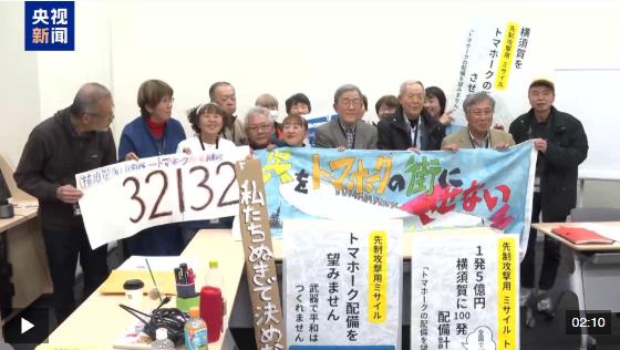 日本横须贺市市民团体代表 新仓裕史:我们这几个城市都有日本海上自卫队的基地。二战结束,日本战败之后,日本拥有了和平宪法,也决定今后要走和平道路。但现在这几个港口城市又和80多年前一样,成为以军事优先的海军基地,“战斧”导弹的部署就说明了这一点。我们希望能够设法阻止“战斧”巡航导弹的部署。
