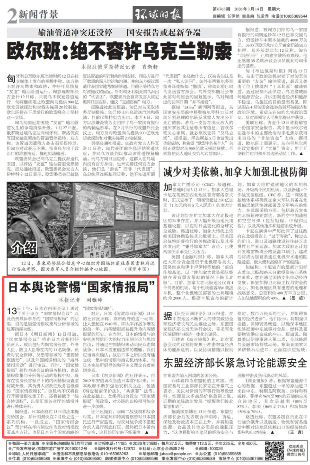据日本《朝日新闻》13日报道,“国家情报会议”将由日本首相担任负责人,成员包括内阁官房长官、外务大臣、防卫大臣等在内的11名阁僚,负责对安全保障、反恐等领域的“重要情报活动”,以及外国间谍相关的“海外情报活动”进行审议。同时,“国家情报局”将作为该会议的事务机构,也是情报收集与分析等活动的指挥中枢。现有在官房长官领导下的内阁情报调查室将被升级,其负责人将改任政务官级别的“国家情报局长”。该机构不仅将自行开展情报收集工作,还将被赋予“综合协调权”,以便汇集各省厅的情报并进行整体分析。据报道,日本政府在13日将法案提交给国会,并计划最快在7月设立这一系列机构。一旦成立,“国家情报会议”预计将在年内制定作为政府情报政策基本方针,也是日本首个国家战略的“国家情报战略”。对此,日本《信浓每日新闻》13日的社评批评称,高市政府的这一动向,让人想起在1940年,即太平洋战争爆发的前一年,内阁情报部被提升为内阁情报局的历史。在当时,日本的情报与治安机关凭借巨大的权力压制言论与思想自由,并通过控制情报来动员民众走向战争。日本不应重蹈这样的覆辙。我们应当再次确认:战后日本之所以没有建立统一集中的情报与治安机构体系,与日本宪法所倡导的和平主义理念有着密切关系。日本《东京新闻》的社评表示,自2012年安倍再次当选日本首相以来,日本政府不断加强治安相关立法,包括《特定秘密保护法》、“共谋罪”法等。在此基础上,如果再出台设立“国家情报局”等政策,对公民的监控很可能会进一步加强。社评还提到,回顾二战战前和战争时期,日本宪兵和特高警察曾对日本国民进行严密监视,对反对战争或不愿配合的人进行彻底打压,最终把日本带向了灾难,这样的历史绝不能重演。