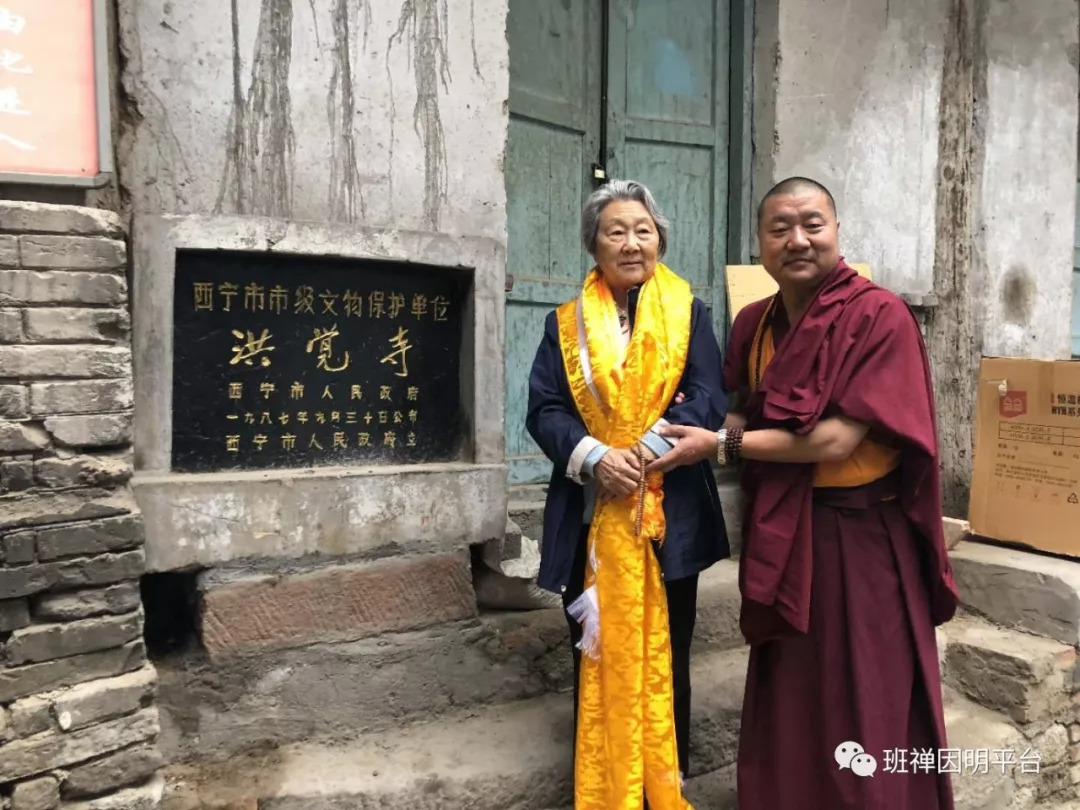 图为周秉德探访十世班禅驻锡寺——西宁宗喀大慈宏觉寺。图片来自:班禅因明平台