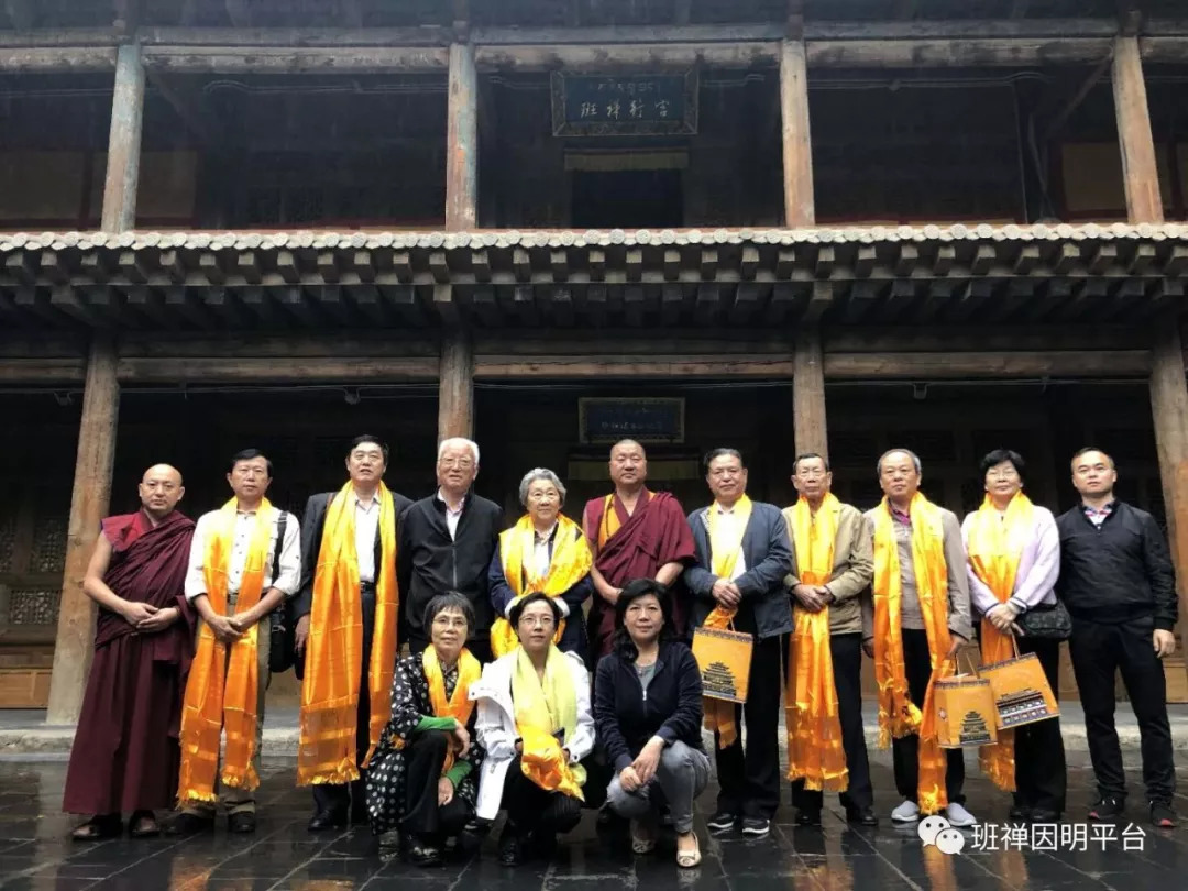 图为周秉德一行在西宁宗喀大慈宏觉寺历代班禅大师行宫前合影。图片来自:班禅因明平台