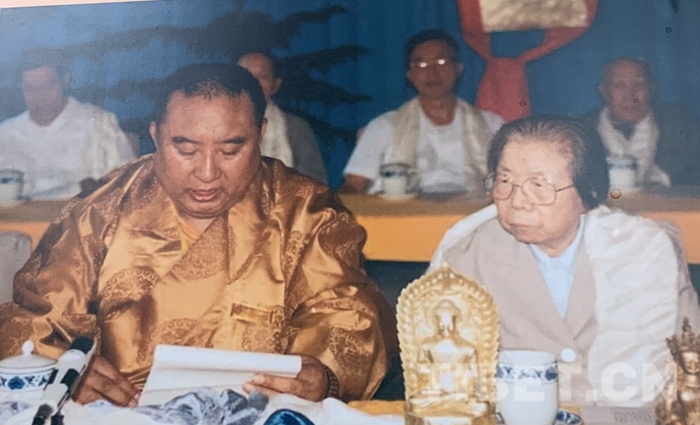 图为十世班禅在中国藏语系高级佛学院成立大会上致辞。