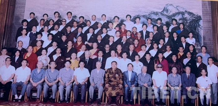 图为参加中国藏语系高级佛学院成立大会的全体领导与师生合影。